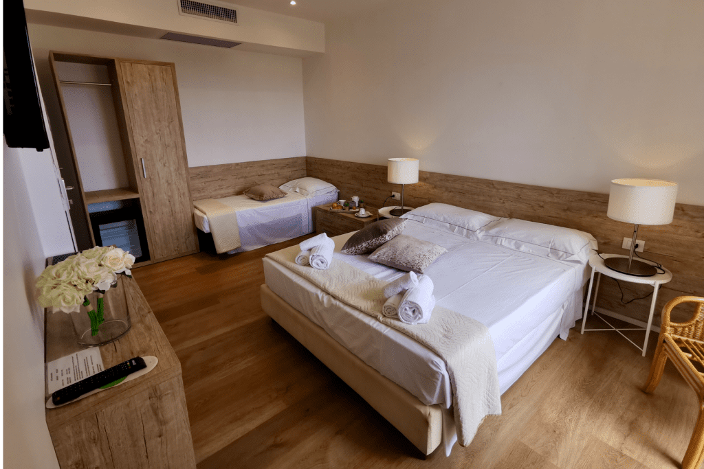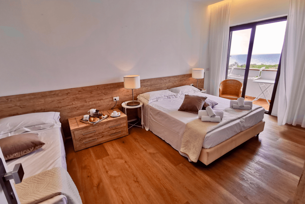 Staying in our structure, you can take advantage of our private parking space and you can choose to leave the car parked for the entire holiday. La Cinta, a 5 km long beach, is in fact just 100 meters away from your room. The city center with its restaurants and bars is just a pleasant 10-minute walk on foot.